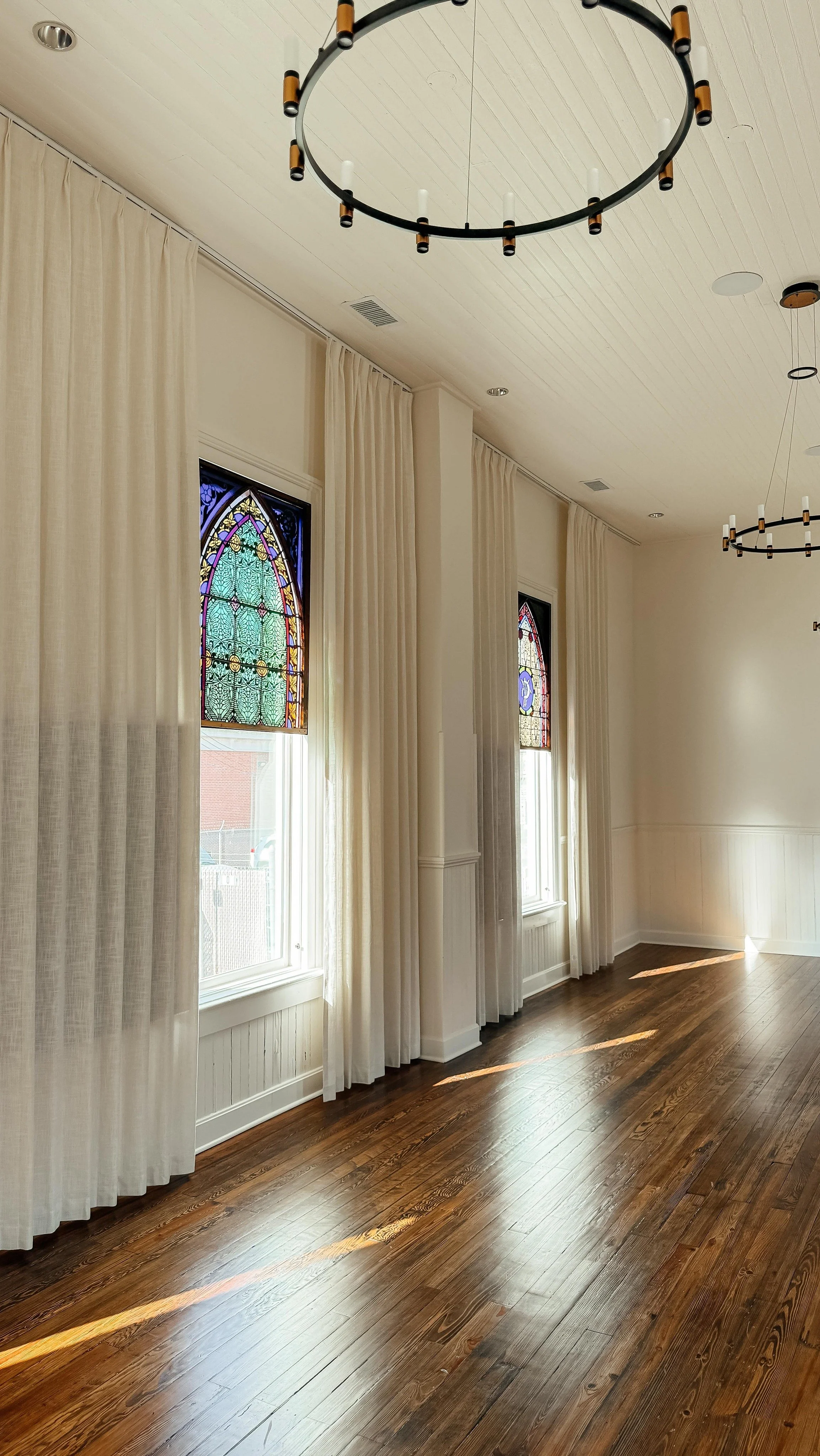 Celebrate your wedding, shower, or unforgettable gathering for up to 100 guests at a bright, open venue with beautiful stained glass windows and interiors.